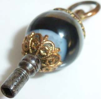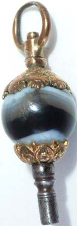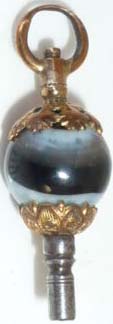 Clé munie d'une jolie pierre en agathe noire et blanche en forme de boule.