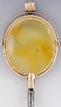 Clé ovale munie d'une pierre en agathe de couleur jaune.