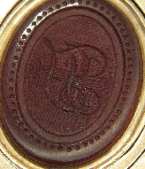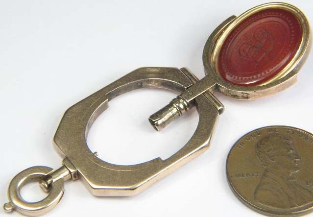 Clé en argent munie d'une agathe de couleur rouge monogrammée sur chacune de ses faces.