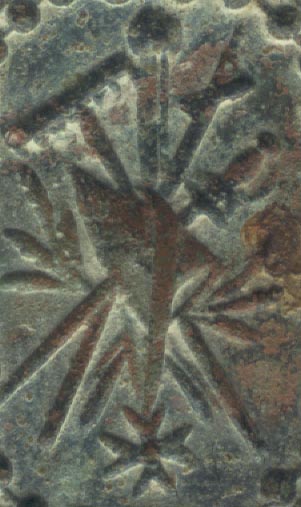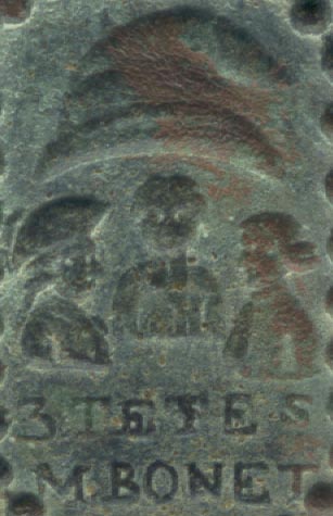 sur une face et d'instruments (armes et outils) sur l'autre face.