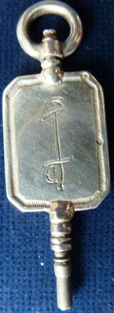 Clé en argent décorée d'un faisceau surmonté d'un bonnet phrygien d'un côté et une épée surmontée également d'un bonnet phrygien sur l'autre côté.