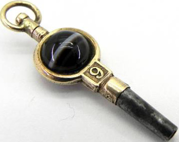 Clé numérotée "9" munie d'une pierre ronde de couleur noire avec des traits blanches