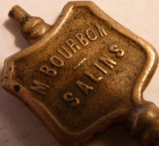 Clef publicitaire en laiton avec l'inscription "M BOURBON A SALINS".