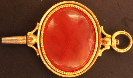 Jolie clef ovale munie d'une pierre en cornaline.