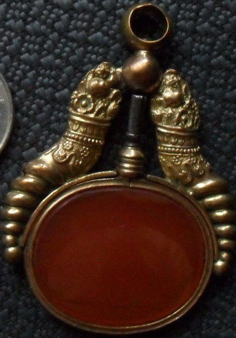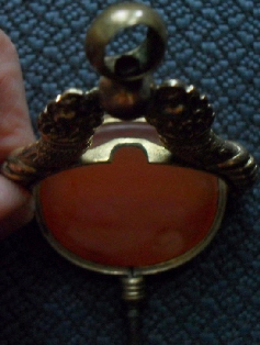 Clé qui se bascule munie d'une cornaline ovale.