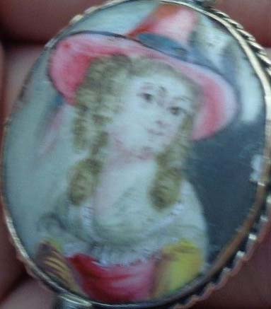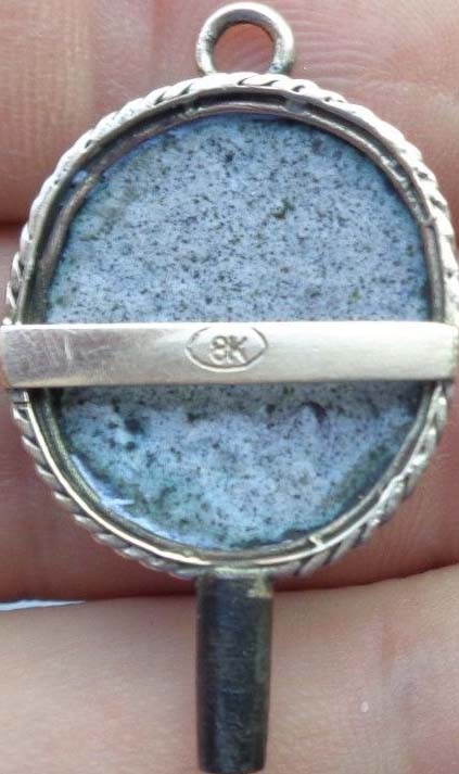 Clé émaillée représentant un portrait d'une femme de la "bourgeoisie"