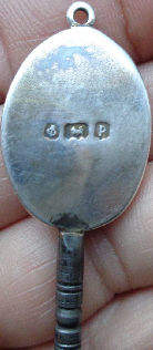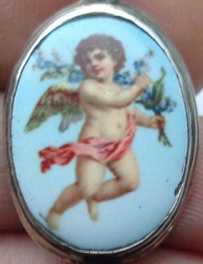 Clé de forme rectangulaire émaillée représentant un enfant accompagné de son fob.