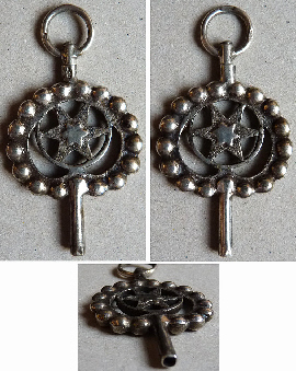 En son centre une petite étoile à six branches au dessus d'une autre étoile également à six branches entourée d'un cercle.