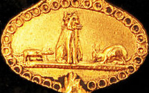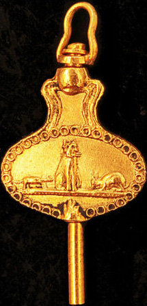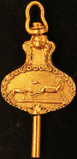 Clé plaquette gravée représentant une fable de la fontaine.