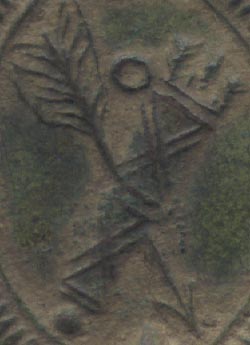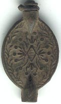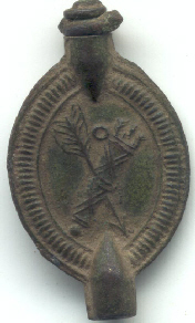 Clé plaquette gravée d'un porte-flèche transpercé d'une flèche sur une face