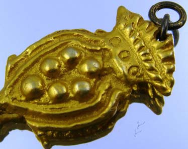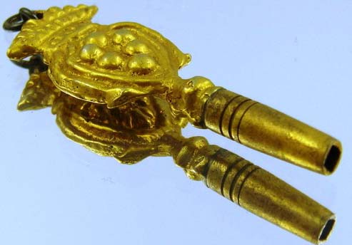 Clé en or avecune fleur de lys d'un côté et de six boules de l'autre côté