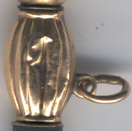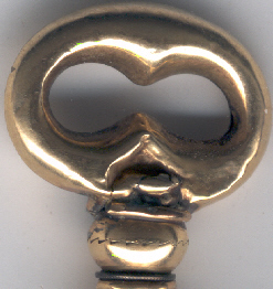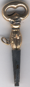 Clé en or à cliquet en forme de clef. La clé est en mauvaise état, déchirure, trace de bosse, carré cassé.