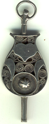 Clé en argent faisant penser à un instrument de musique, la harpe.