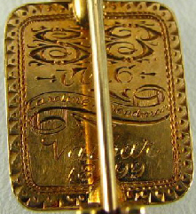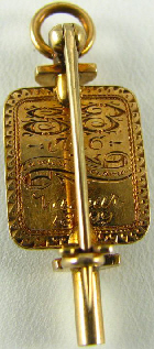Grande clé en pomponne d'une hauteur totale de 6,40 centimètres de hauteur et de 3,30 centimètre de largeur en sa partie la plus large. Décor symétrique de chaque côté de la clé avec la présence d'un animal, un ane. Quelques traces de soudure.
