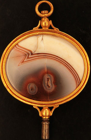 Clé en laiton munie d'une agathe ovale.