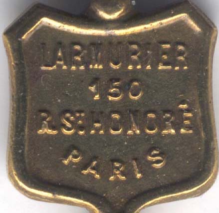 Clé publicitaire en laiton avec l'inscription "larmurier 150 r.st honoré Paris"