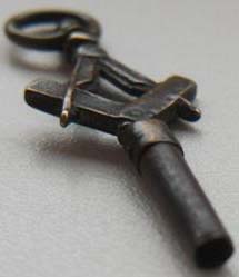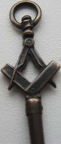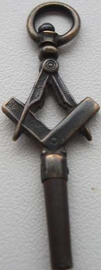 Clé maçonnique avec son équerre et son compas.