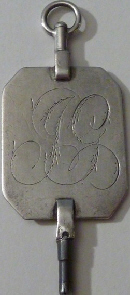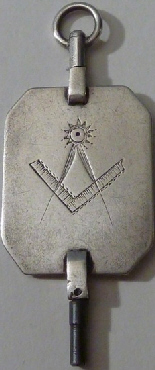 Clé maçonnique avec son équerre et son compas sur une face et deux initiales P et G peut-être.