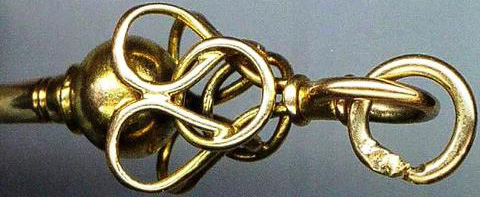 Clef en or surmontée d'anneaux.