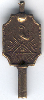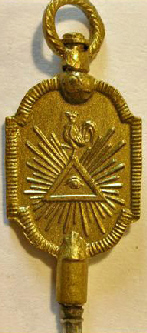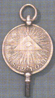 Allégorie maconnique, l'Oeil dans un Triangle est le symbole de l'Essence et de la connaissance divine. On le trouve également dans les religions chrétiennes. L'on disait qu'il veillait sur la Constitution.