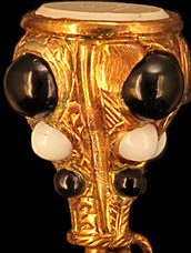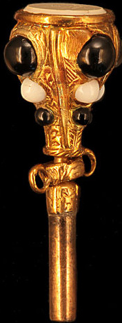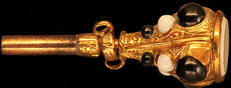 Clé munie de plusieurs petites perles de couleur noires et blanches agathe ovale.