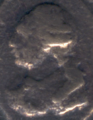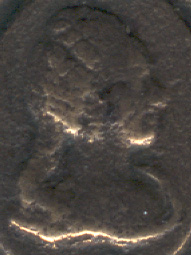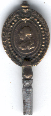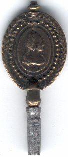 Clé plaquette gravée en laiton repésentant sur chaque face un personnage avec sa perruque d'époque.