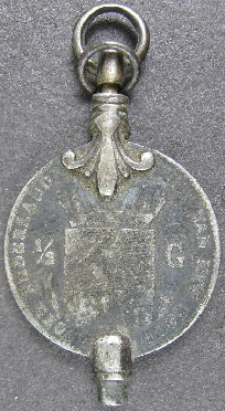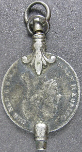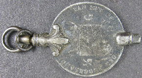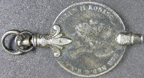 Clé représentant une pièce allemande. Fleur de lys en dessous de l'anneau d'accrochage.
