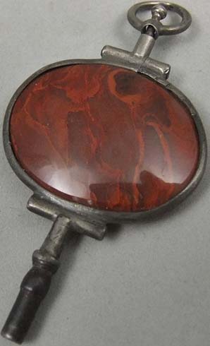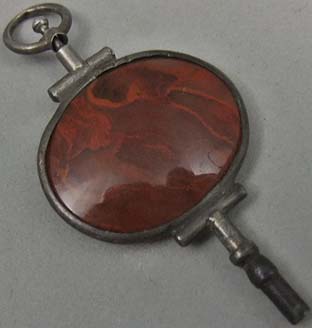 Clé en argent muni d'une pierre ovale marron de couleur acajou