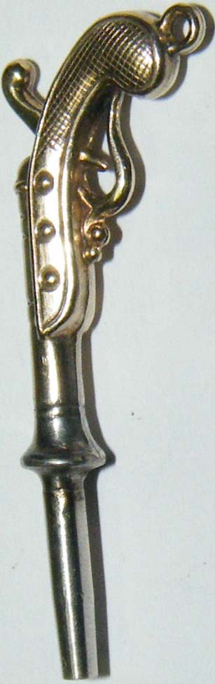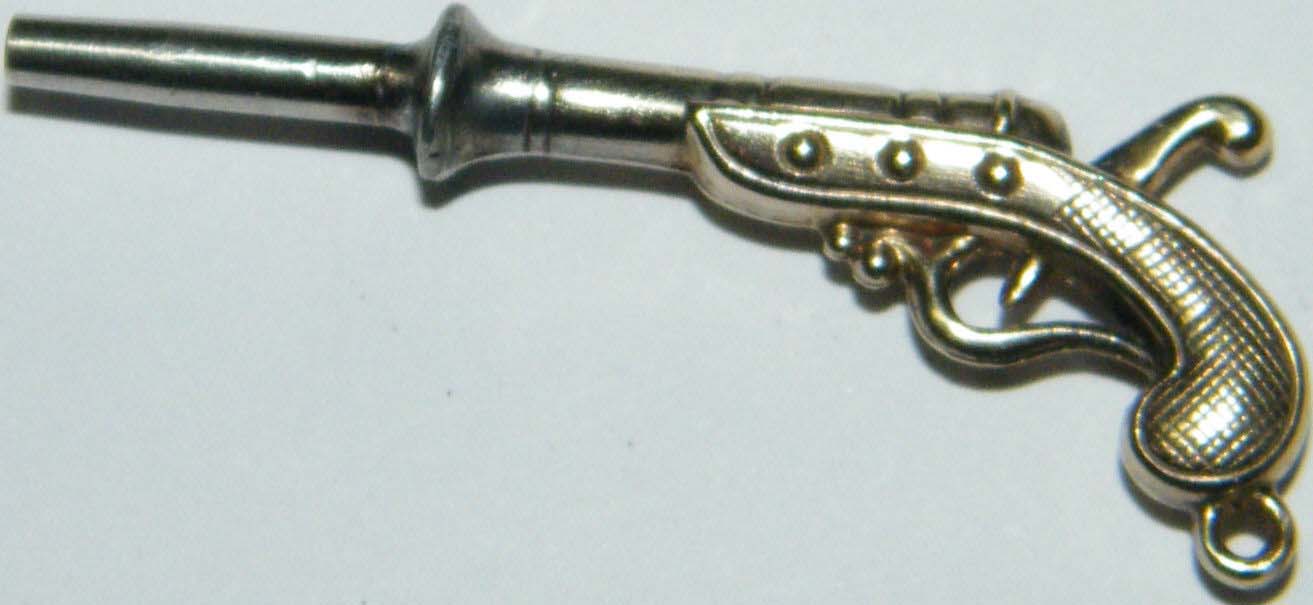Clé représentant un pistolet.