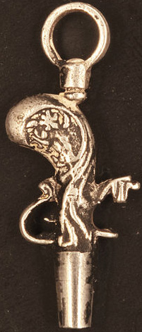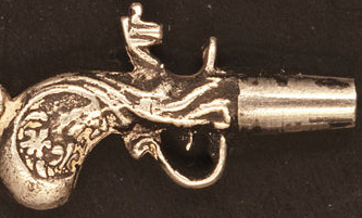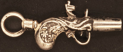 Clé représentant un révolver, de petite taille, pouvant être attribuée à une femme