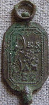 Clé en laiton gravée d'un côté "bele clef" et de l'autre côté "des dames".
