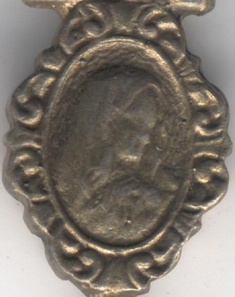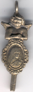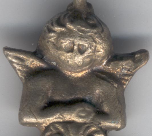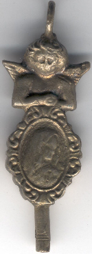 Clé dont le thème est la religion. Le carré est surmonté d'un cadre représentant le christ Jésus qui est lui-même surmonté d'un ange.