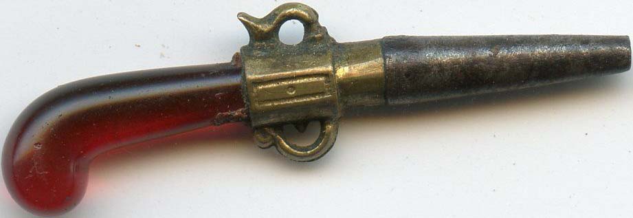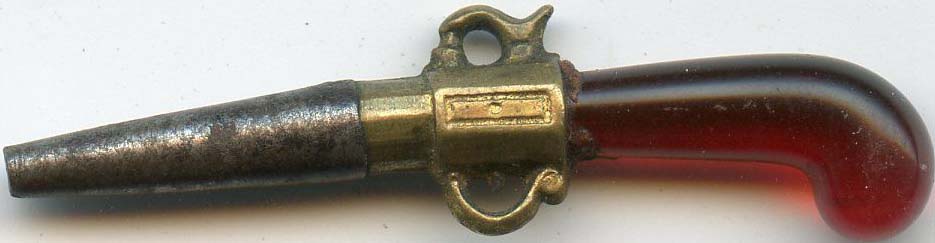 Clé représentant un pistolet avec une crosse en onix..