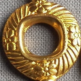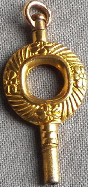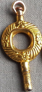 Clef ronde pouvant représenter une roue décorée de quatre fleurs