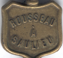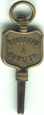 Clé publicitaire en laiton avec l'inscription "rousseau à saulieu"