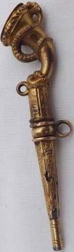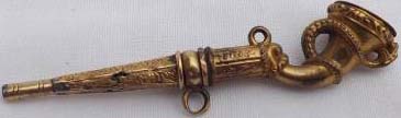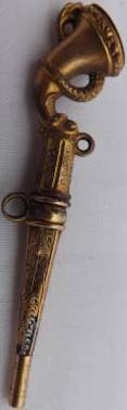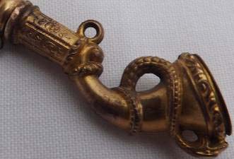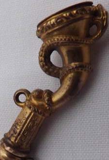 Clé représentant une corne entourée d'un serpent mordant le haut de la clef.