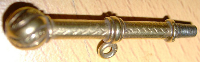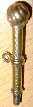 Clé en or surmontée d'une boule faisant penser à une sphère.