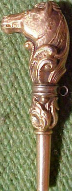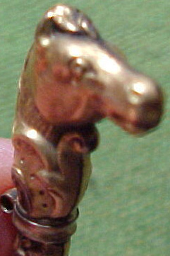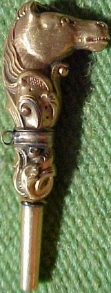 Clé tenant sur un socle un animal représentant une tête de cheval.