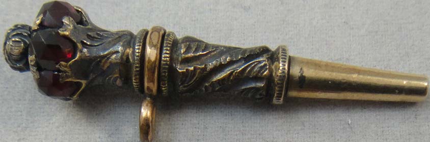 Clé torsadée munie de plusieurs petites pierres à facette.