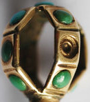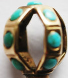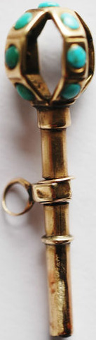 Clef munie de 12 pierres turquoises. (6 de couleur bleue et 6 de couleur verte dont une manquante)